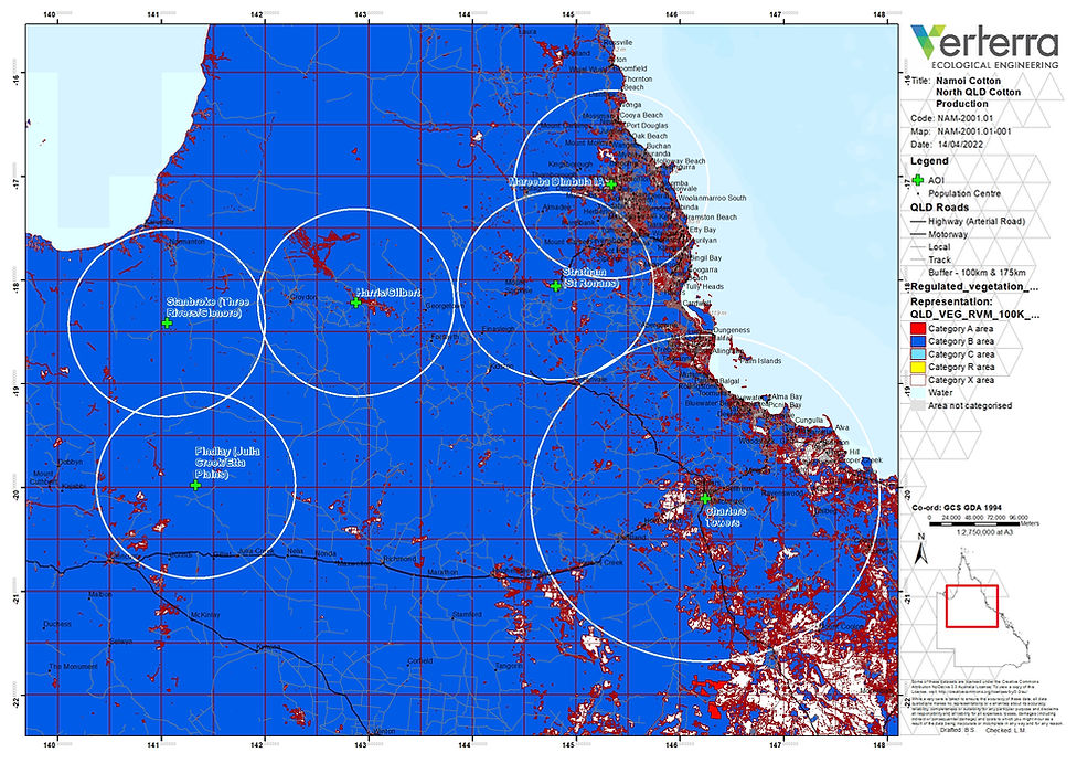 Relevant native vegetation includes Category A, B, C and R vegetation. The extent of regulated vegetation on Cape York is illustrated in the figure below. This figure indicates that the majority of the Cape is regulated and subject to an extended approval pathway to clearing for irrigated cotton development.
